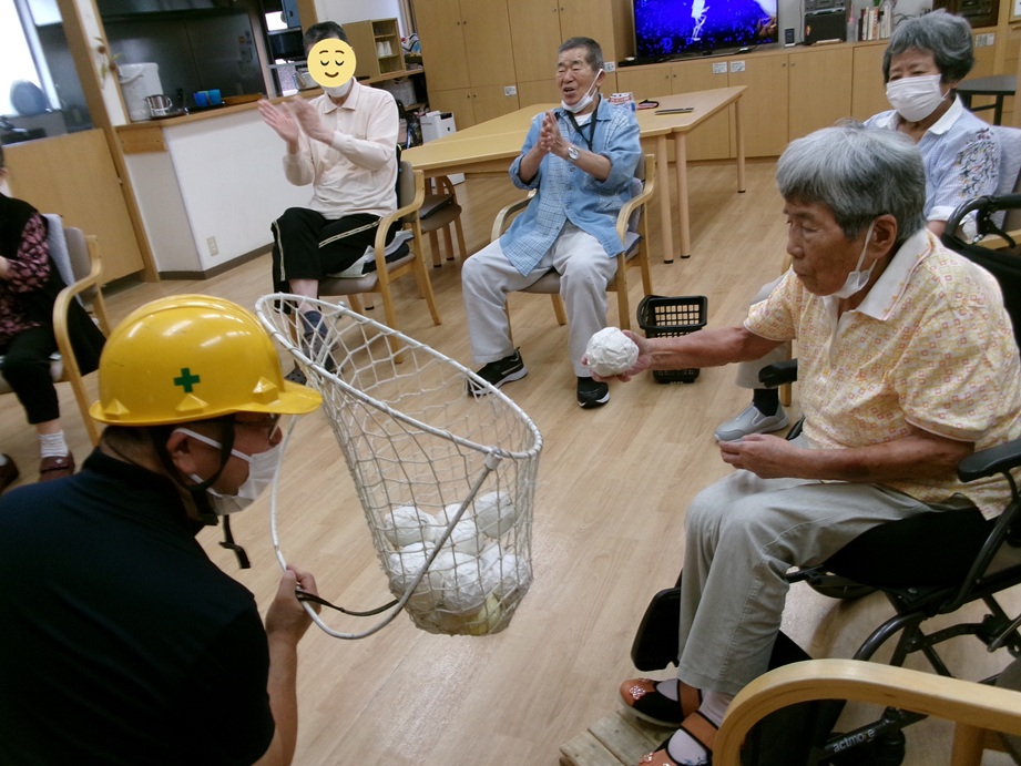 投稿日: 2025年10月10日2025年10月11日 投稿者: matsubara10月10日(金) 「秋の運動会」 日中はまだ少し暑さが残りますが、朝晩は涼しくなってきましたね。秋の気配を感じるようになりました。 「秋の運動会」を開催しました。紅白のチーム対抗戦、玉入れ競争を楽しみました。球が勢いよく投げられていきます。球が届かない方には籠を低くしてサービスタイムです。皆さま、いい笑顔ですね。 競争が終わり、球の数を数える時はドキドキしますね。僅差で紅組の勝ちでした。「バンザーイ!バンザーイ!」と勝利を喜んでおられました。