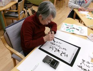 投稿日: 2026年1月5日2026年1月9日 投稿者: matsubara1月5日(月) あけましておめでとうございます 皆さま、お正月はいかがお過ごしでしたでしょうか?外は寒そうなのでデイルームで書初めをしました。 皆さま、思い思いの気持ちを書かれているようで真剣そのものです。 今年も「ファミリー」で楽しい時間を過ごして頂けるようスタッフ一同頑張ってまいります。本年もどうぞよろしくお願いいたします。